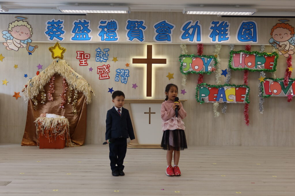 璀璨的聖誕裝飾將舞台映照得光彩奪目,牧師透過分享詮釋了聖誕節的深刻意義。孩子們身穿色彩繽紛的服裝,以充滿活力的歌舞表演,全心投入《天父的愛》聖誕劇的演出,傳揚耶穌降生的喜訊。精彩的表演贏得了全場家長熱烈不斷的掌聲。