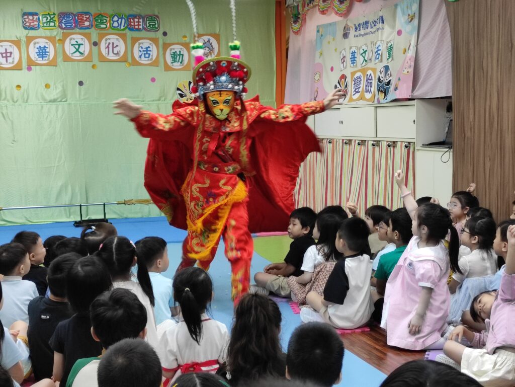 學校進行了一場精彩的四川川劇變臉表演, 在表演前為學生們簡單介紹了川劇的面譜,讓小朋友們對這項傳統藝術有了更深入的認識。黃師傅生動的講解和互動,瞬間拉近了與孩子們的距離,氣氛熱烈而歡樂!
